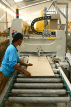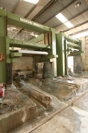 At first, the block is classified by the shape and the size, and then cut by a gangsaw or block cutter into slabs. The large blocks are cut into slabs or strips depending on the machinery used.. There are two ways the blocks can be cut into slabs: